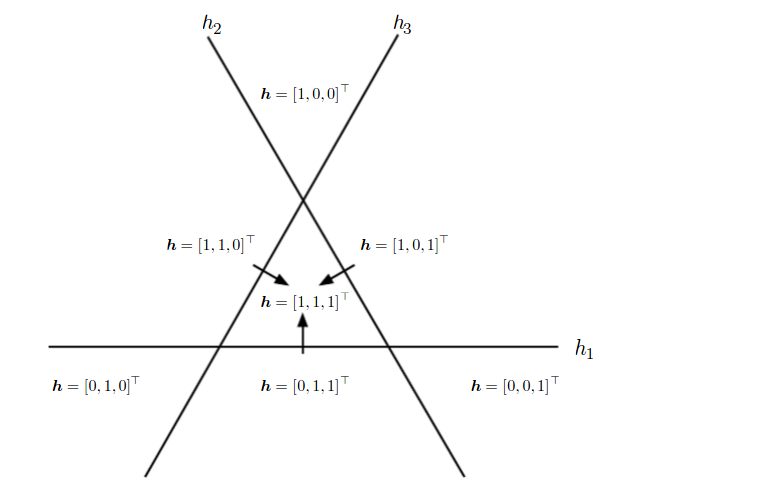 Actually, with a deeper representation you can approximate the same function and solve the same task more compactly, or solve more tasks with the same resources. For instance, traditional computer science studies Boolean circuits that implement or Boolean functions, and it turns out that many functions can be expressed much more efficiently if you allow for circuits of depth 3, some more functions, of depth 4, and so on, even though circuits of depth 2 can obviously express everything by reducing to a DNF or CNF. Something similar happens in machine learning. Picture a space of test points we want to sort into two groups. If we have only “one layer” then we can divide them with a (hyper)plane. If there are two layers then it comes down to linear separating surfaces composed of several hyperplanes (that’s roughly how boosting works — even very simple models become much more powerful if you compose them in the right way). On the third layer, yet more complicated structures made out of these separating surfaces take shape; it’s not all that easy to visualize them any more; and the same goes for subsequent layers. Below is a simple example from Goodfellow, Bengio, Courville “Deep Learning”. This illustration shows that if you combine even the simplest linear classifiers, each of which divides a plane into two half-planes, then, consequently, you can define regions of a much more complicated shape: