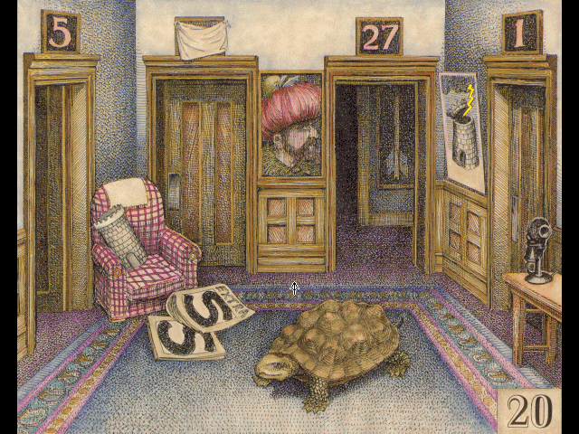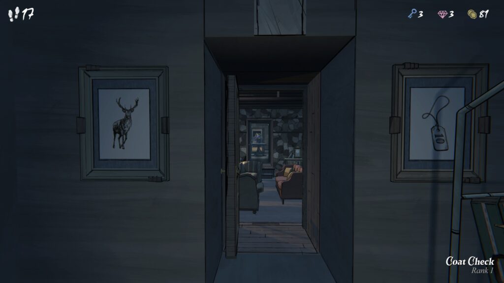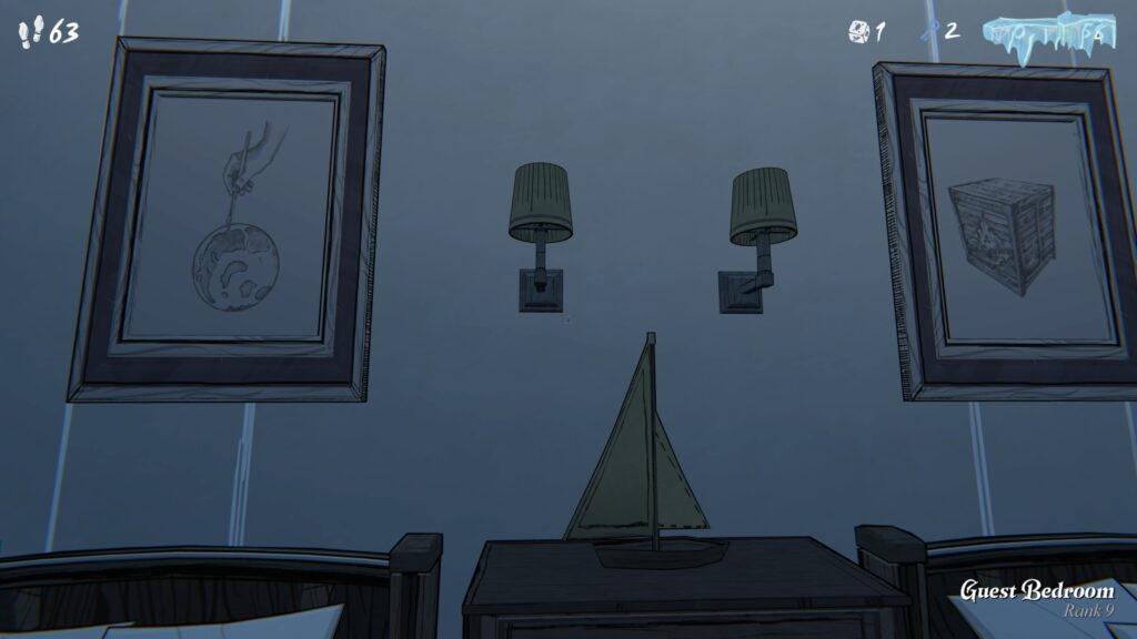 Или, например, на стенах большинства комнат висят чёрно-белые рисунки. Когда начинаешь обращать на них внимание, быстро замечаешь, что они повторяются не в зависимости от самой комнаты, а в зависимости от её места на карте: в условном нижнем левом углу карты будут всегда висеть одни и те же картинки. Становится очевидным, что здесь есть какая-то задачка.