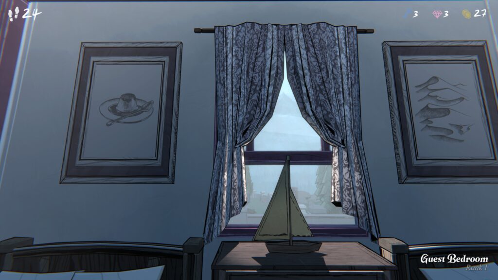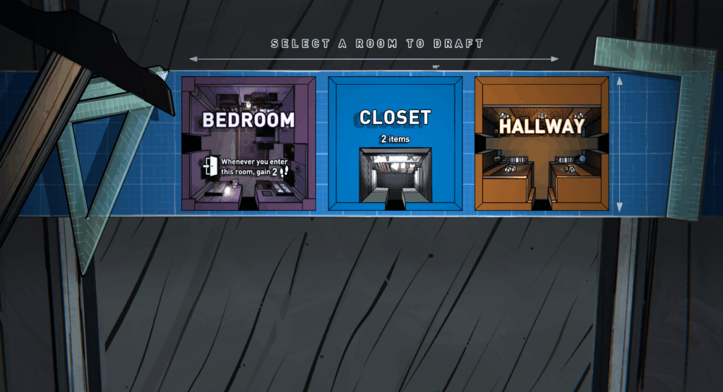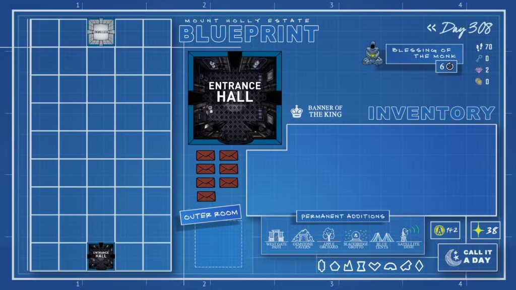 Причём каждый день дом меняется: проходя через дверь, игрок получает три случайно выбранные комнат-карт, из которых ему нужно выбрать ту, которая и появится на чертеже особняка; эта механика драфтинга — главная новизна игры, которая отлично сочетается с головоломками. У Саймона ограниченное количество “шагов” (переходов из комнаты в комнату), и если он не успевает достичь цели за один забег, приходится начинать заново — особняк возвращается в исходное неопределённое состояние.