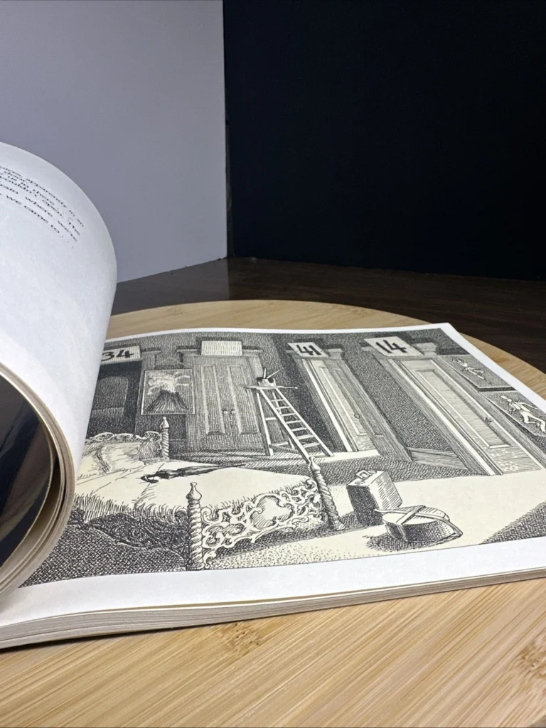 Главным источником вдохновения для Blue Prince была легендарная книга Кристофера Мэнсона “Maze: Solve the World’s Most Challenging Puzzle” (1985) — иллюстрированный сборник из 45 комнат, где читателю предлагалось найти кратчайший путь от входа в центр лабиринта и обратно. При первой публикации за решение даже полагался денежный приз, а сейчас книга, конечно, превратилась в cult classic, экземпляры на ebay уходят по $150 и выше.