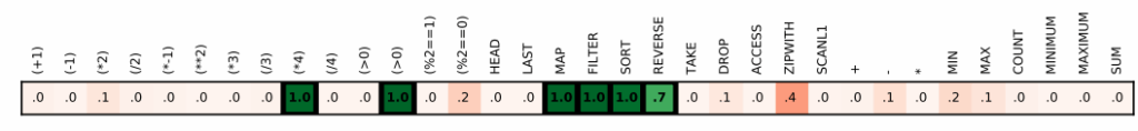 Balog et al. (2016) present the so-called DeepCoder model. The idea here is that actually, the program synthesis problem can be solved with search-based techniques: one can simply try to enumerate all possible ASTs, discarding those that are inconsistent with available examples. Naturally, even for restricted domain-specific languages this kind of search is very computationally intensive, let alone for general-purpose programming languages, and can be done only for very short programs. But then, it’s not like end-to-end techniques can find long programs either, and there is a place for machine learning in search-based methods: models can learn what kind of nodes (functions) or tree structures are more likely given the available examples and thus guide the search. Specifically, DeepCoder predicts the probability that a given function will appear in the code, given input-output examples: