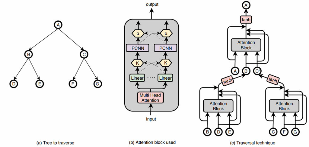 Models based on self-attention have completely transformed the field of natural language processing over the last year. Transformer, BERT, OpenAI GPT and their successors have been instrumental in most of the recent famous NLP advances. In this work (ACL Anthology), Mahtab Ahmed et al. present an extension of the self-attention framework that worked so well for sequences to trees, proposing a Tree Transformer model that can handle phrase-level syntax from constituency trees. Basically, they use the attention module as the composition function in a recursive tree-based structure. I won’t go into much detail but here is their main illustration: