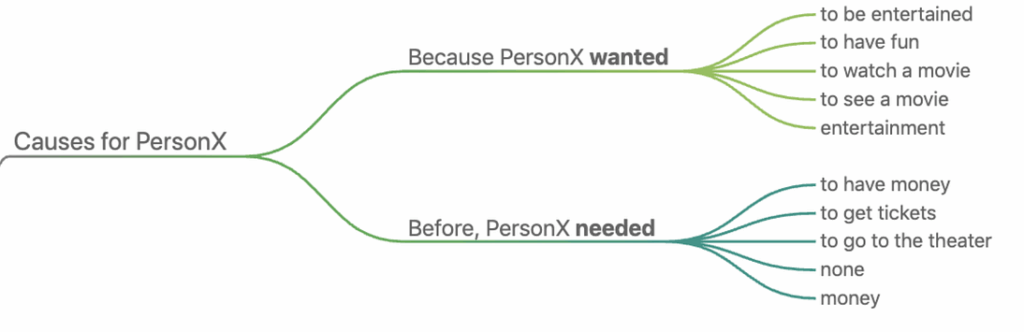 Looks good, right? And here are some predictions for causes and effects for the phrase “Eric wants to see a movie”, answering the question — ‘Why would that be?’