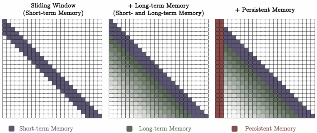 Finally, they move from separated or sparsified spatial and temporal attention to full 3D attention, often used previously to save on compute. The problem with separated attention, though, is that it leads to flickers and inconsistencies: part (c) of the figure above shows how the head of the person in the next frame cannot directly attend to his head in the previous frame, which is often a recipe for inconsistency. Yang et al. (2025) note “the great success of long-context training in LLMs” and propose a 3D text-video hybrid attention mechanism that allows to attend to everything at once.