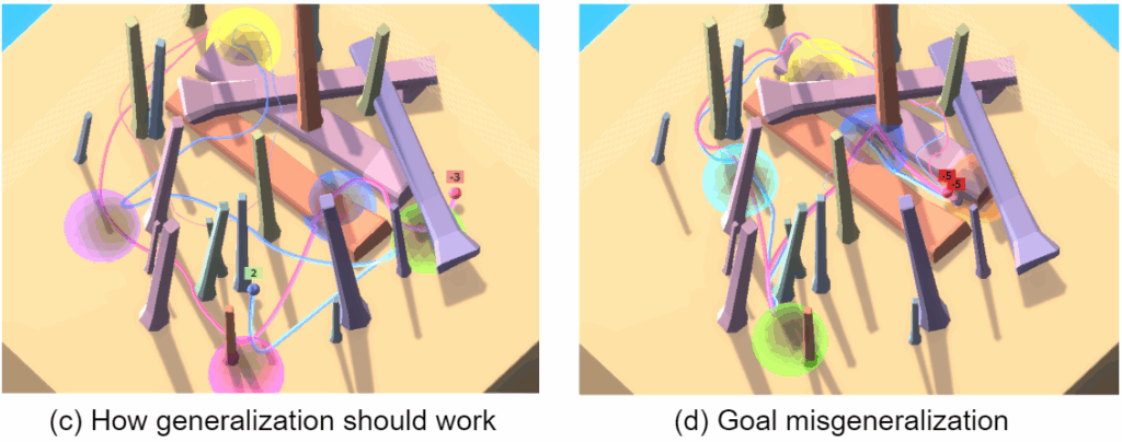As for the results, all of these tricks allow to distill denoising diffusion policies into mixtures of experts. The point of this work is not to improve action selection policies, it is to make them practical because it’s absolutely impossible to do a reverse diffusion chain every time your robot needs to move an arm. And indeed, after distillation the resulting MoE models not only solve tasks quite successfully but also learn different experts. The illustration below shows that as the number of experts grows the experts propose different trajectories for a simple obstacle avoiding problem: