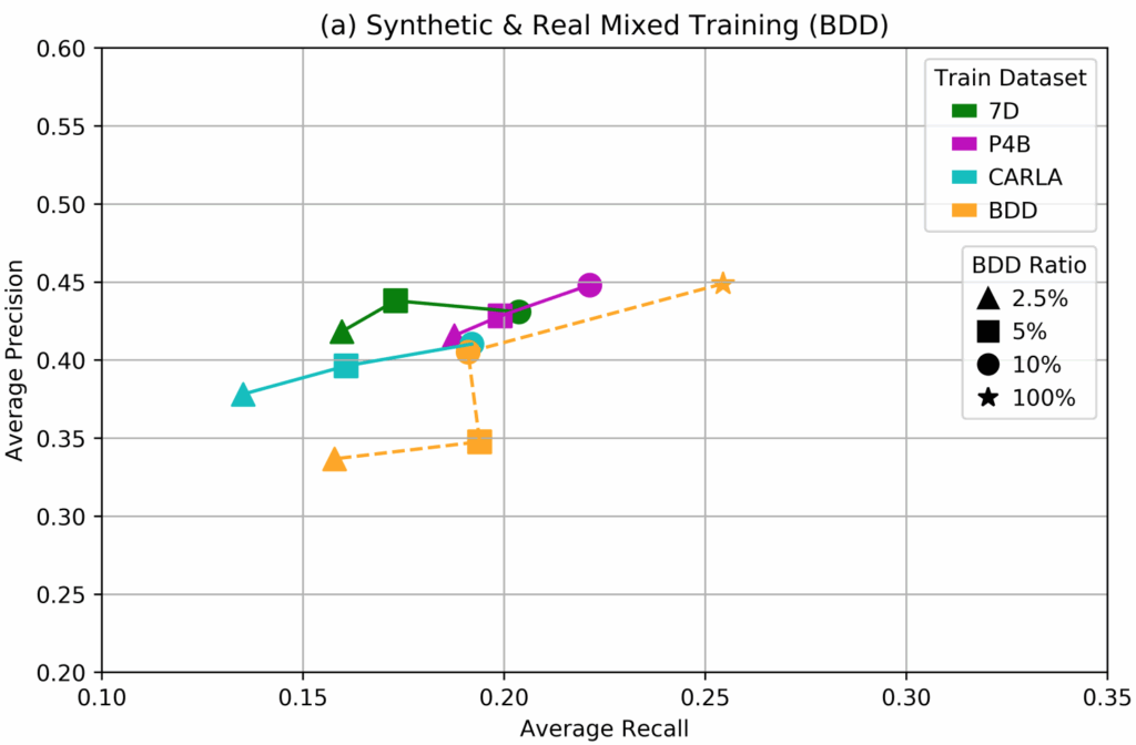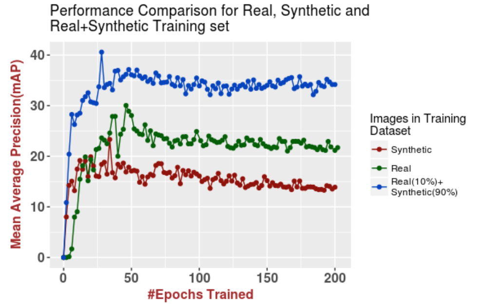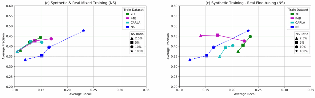 Even more interestingly, we see that the improvement comes not from simply training on a hybrid dataset but from pretraining on a synthetic dataset and fine-tuning on real data.