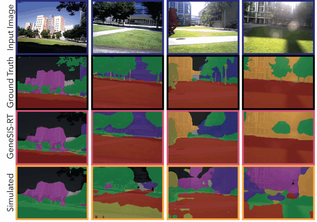 Naturally, artificially produced synthetic data cannot be perfectly photorealistic. There always exists a domain gap between real and synthetic datasets, stemming both from this lack of photorealism and also in part from different approaches to labeling: for example, manually produced segmentation masks are generally correct but usually rough and far from pixel-perfect.