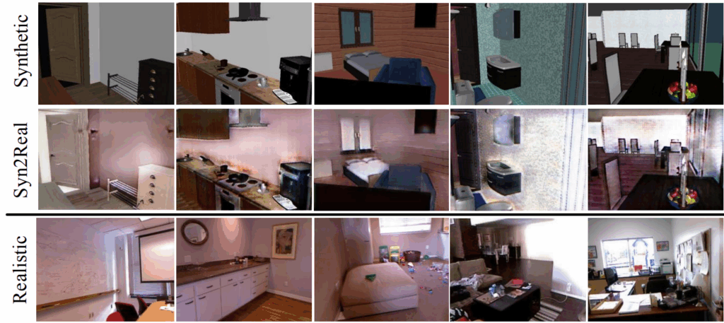 Therefore, most works on synthetic data center around the problem of domain adaptation: how can we close this gap? There exist approaches that improve the realism, called synthetic-to-real refinement, and approaches that impose constraints on the models—their feature space, training process, or both—in order to make them operate similarly on both real and synthetic data. This is the main direction of research in synthetic data right now, and much of recent research is devoted to suggesting new approaches to domain adaptation.