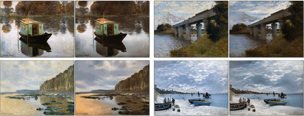 It is hard to give specific examples where the difference would be striking, but as you can see, adding even a small high-quality synthetic dataset (our synthetic set was ~3x smaller than the real dataset) brings tangible improvements in the quality. Moreover, for some metrics related to visual quality (conn and grad in particular) the model trained only on synthetic data shows better performance than the model trained on real data. The Mixed and DA models are better yet, and show improvements across all metrics, again demonstrating the power of mixed syn+real datasets.