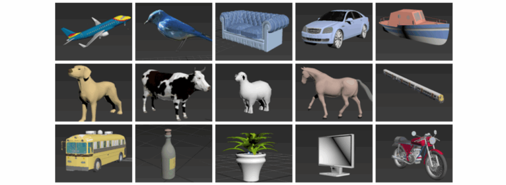 Back in 2014, researchers were still not sure if synthetic data was helpful. Moreover, the synthetic data they had was far from photorealistic, it was more like the ShapeNet dataset we discussed in a previous post. The work by Peng et al. was in many ways intended to study this very question: can you improve object detection or, say, learn to recognize new categories with synthetic data that looks like this: