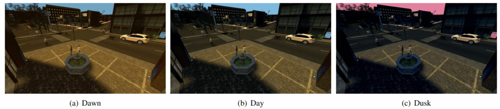 As for the rest, the Source engine allows to vary lighting conditions and, naturally, place cameras at arbitrary positions, e.g., in realistic surveillance camera locations: