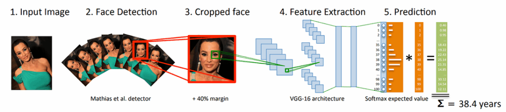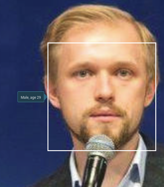 Age and gender estimation sounds like a traditional machine learning task: binary classification for the genders (it might stir up some controversy but yeah, our models live in a binary world) and regression for the ages. But before we can begin to solve these problems, we need to find the faces on the photo! Classification will not work on the picture as a whole because it might, for example, contain several faces. Therefore, the age and gender estimation problem is usually broken down into two steps, face detection and age/gender estimation for the detected faces: