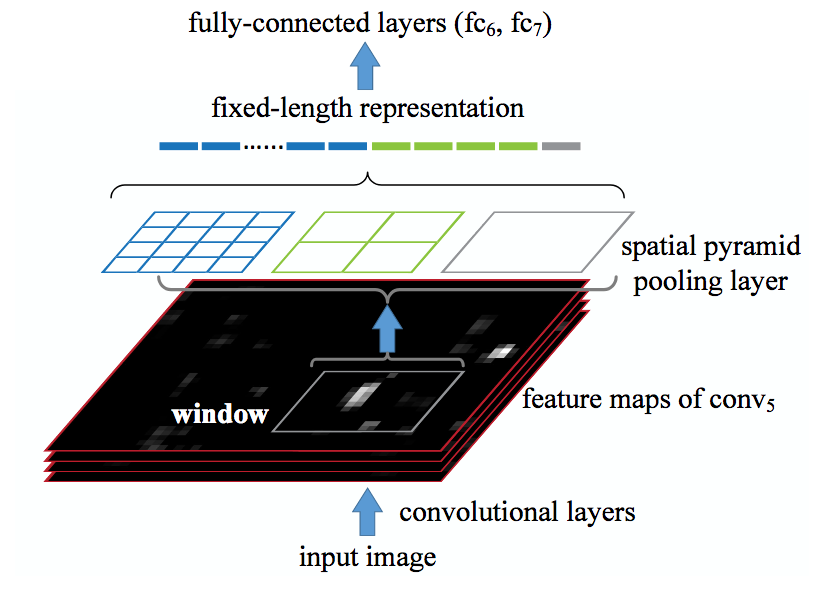 In order to make detection independent of the size of the object in the image, R-CNN uses Spatial Pyramid Pooling (SPP) layers that had been introduced in SPPnet. The Idea of SPP is brilliant: instead of cropping and warping the region to construct an input image for a separate run of the classification CNN, SPP crops the region of interest (RoI) projection at deeper convolutional layer, before fully-connected layers.