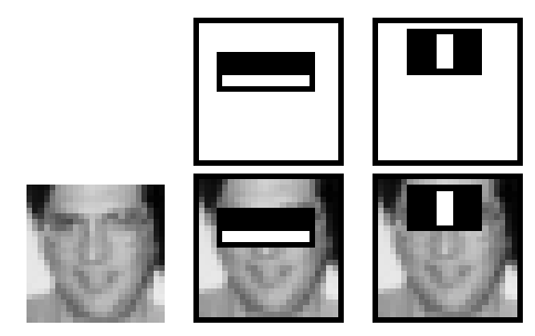 Let us see the Haar filter overlapped on the image and its integral version in action: