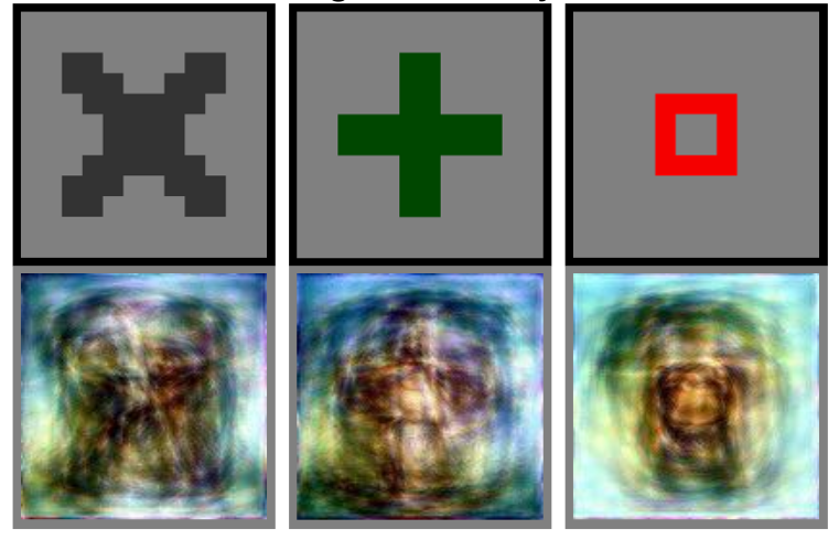 If these results can be replicated and further improved, this is definitely a breakthrough in neuroscience. One can even dream about paralyzed people communicating through fMRIs by concentrating on what they want to say; although in (Shen et al., 2017) reconstruction results are much worse when people are imagining a simple shape rather than directly looking at it, sometimes even with imagined shapes it does seem that there is something there: