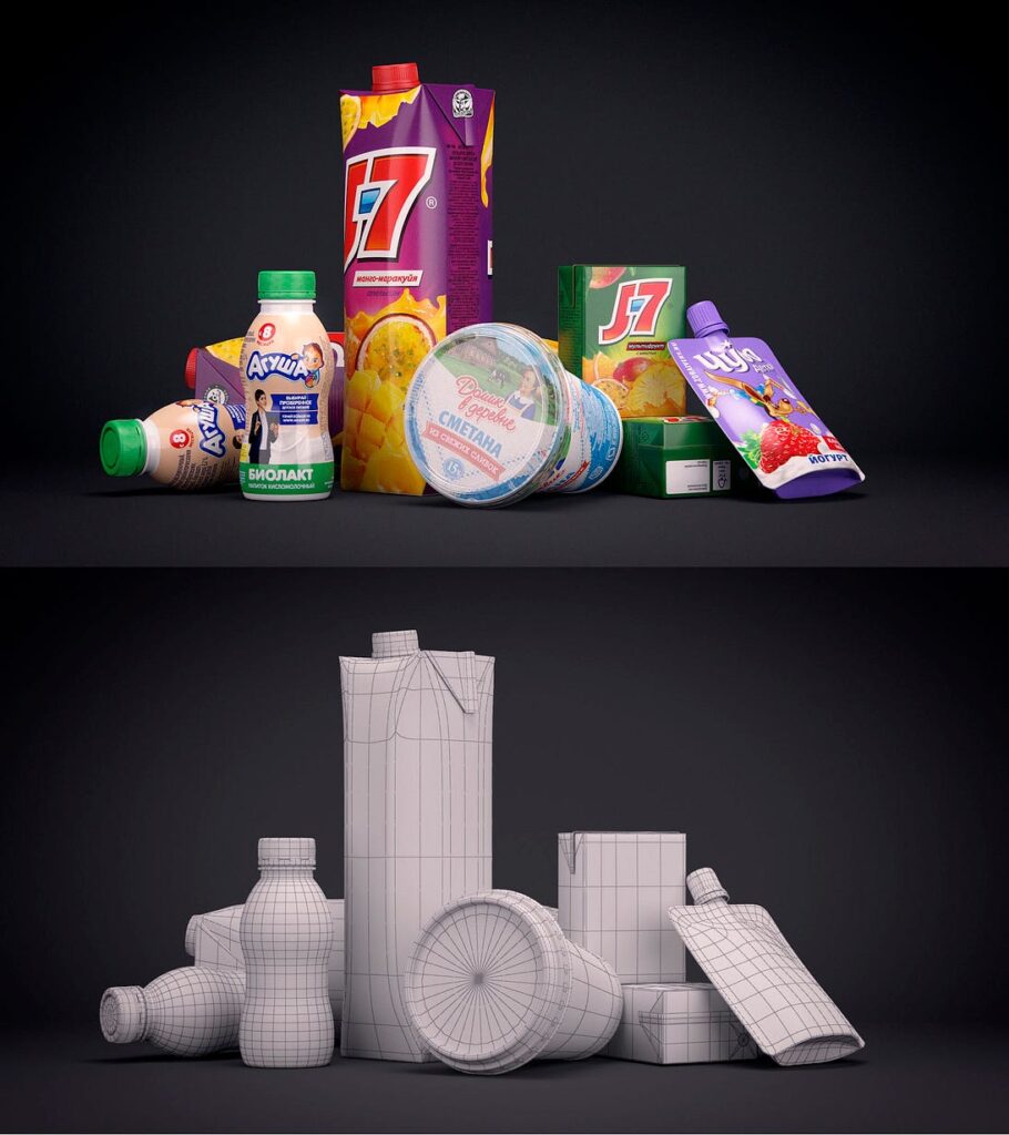 • first, it requires far less manual work; yes, you need to design a 3D model, but this is a one-time investment which then converts into an unlimited number of labeled “photos”; in case of retail the situation is even better since there are not so many different form factors of packaging, and you can reuse some 3D models by simply “attaching” different labels (textures) to them;